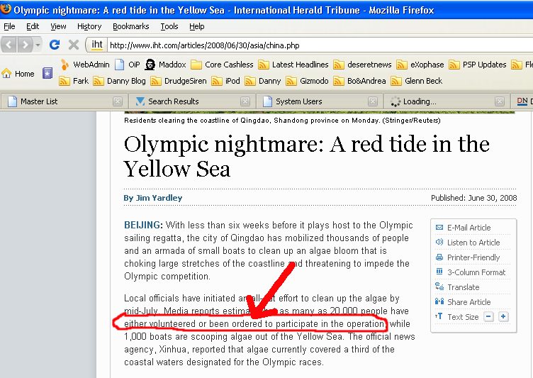 And that is the reason why I am personally boycotting the Olympics. We all know the problems in socialist China so I'm curious as to why the Olympic Committee chose China as an Olympic venue to begin with. You know, that whole "ordered" part reminded me of the 2002 Winter Olympics and how our sheriff threatened us all with our jobs if we volunteered, took time off or got sick during the 2 weeks the Olympics was going on.